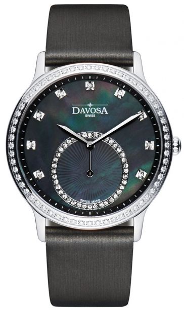 Hodinky věnované holywoodské ikoně Aundrey Hepburn - velké a kulaté pouzdro z ušlechtilé oceli připomíná její legendární sluneční brýle, zatímco perleťový ciferník a zirkonové kameny na ciferníku i pouzdru symbolizují její nadčasovou eleganci. Lehký a jemný nádech dodávají hodinkám jemné řemínky ze saténové kůže, speciálně ručně vyrobené pro společnost DAVOSA v malé výrobně koženého zboží.