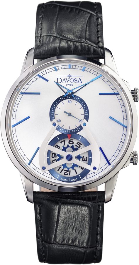Davosa vytvořila hodinky, které opravdu nepřehlédnete – Davosa Cuore2 Quarts. Hodinky o průměru ocelového pouzdra 42 mm, voděodolné (5 ATM) se dvěma kvalitní quartzovými Ronda strojky (1069 a 753) a hodinovou a minutovou ručkou se Superluminovou. Ve středu ciferníku s ručně aplikovanými ukazateli je malý vteřinový číselník. Pod ním najdeme ukazatel času s otáčecím sekundovým kolečkem. Červená šipka značí hodinu. Elegantní Davosa Cuore2 Quarts jsou dostupné ve 3 různých verzích: se stříbrným nebo černým číselníkem s černým koženým řemínkem nebo s modrým číselníkem a modrým řemínkem s krokodýlím vzorem.