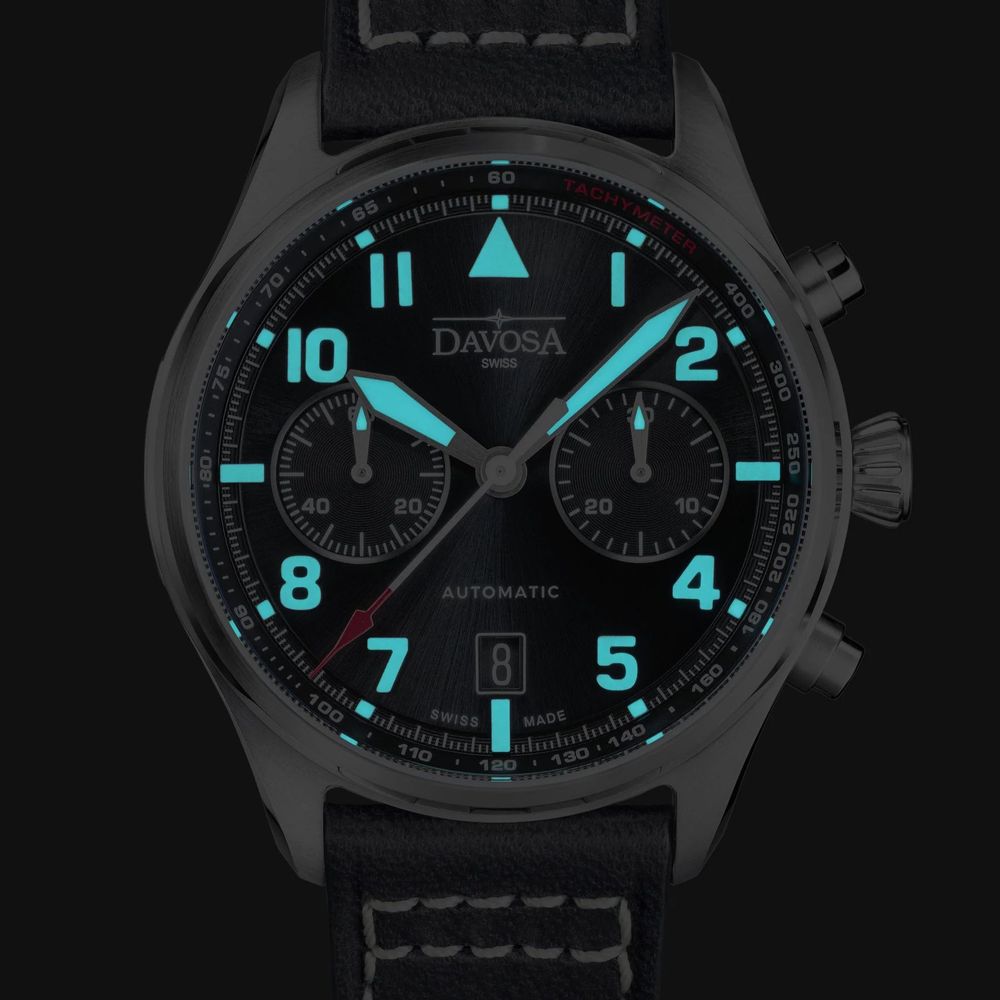Inspirován fascinací létáním, chronograf Newton Pilot, limitovaný pouhými 300 kusy, kombinuje přesnost s jasnou funkčností klasických pilotních hodinek. Každý detail těchto 42 mm hodinek s vypouklým antireflexním sklem je navržen tak, aby zajišťoval přehlednost a spolehlivost v každé situaci.