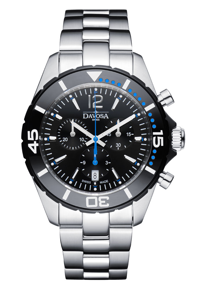švýcarský quartzový strojek Ronda, ocelové pouzdro o průměru 43,5 mm a výšce 13 mm, vodotěsnost 10 ATM, safírové sklo