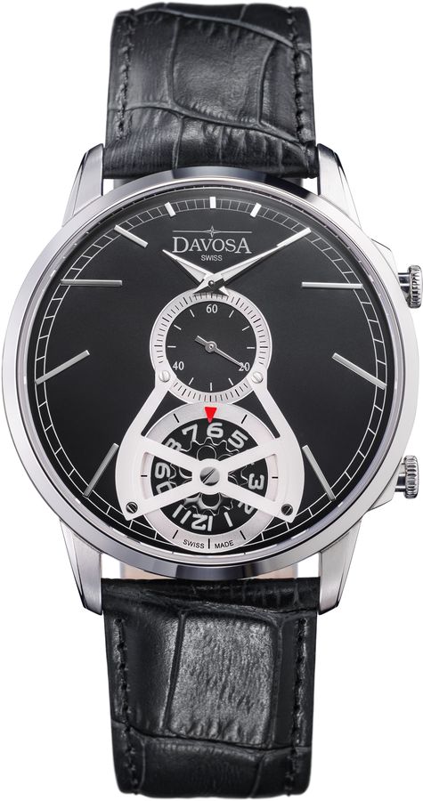 Davosa vytvořila hodinky, které opravdu nepřehlédnete – Davosa Cuore2 Quarts. Hodinky o průměru ocelového pouzdra 42 mm, voděodolné (5 ATM) se dvěma kvalitní quartzovými Ronda strojky (1069 a 753) a hodinovou a minutovou ručkou se Superluminovou. Ve středu ciferníku s ručně aplikovanými ukazateli je malý vteřinový číselník. Pod ním najdeme ukazatel času s otáčecím sekundovým kolečkem. Červená šipka značí hodinu. Elegantní Davosa Cuore2 Quarts jsou dostupné ve 3 různých verzích: se stříbrným nebo černým číselníkem s černým koženým řemínkem nebo s modrým číselníkem a modrým řemínkem s krokodýlím vzorem.