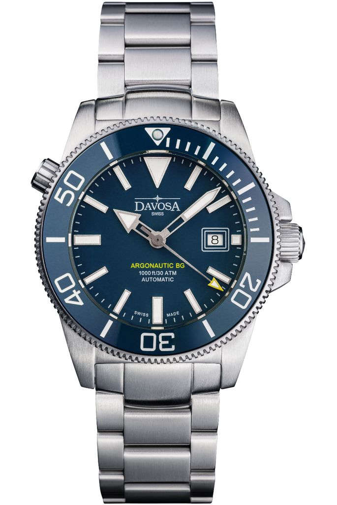 V tomto modelu pracuje automatický strojek Swiss DAV 3021, který je postavený na strojku ETA2824 nebo SW200. Safírové sklíčko odolné proti poškrábání a odleskům zaručuje i prefektní výhled na přehledný ciferník s 15minutovou stupnicí na vložce lunety, která umožňuje orientaci při nouzovém výstupu při potápění. Díky prodloužení tahu z ušlechtilé oceli s bezpečnostní sponou lze hodinky DAVOSA Argonautic BG Automatic snadno nosit i na neoprénu. Výjimečné světelné vlastnosti zajišťuje nejmodernější luminiscenční pigment Super-LumiNova BG W9. Tento materiál byl použit na číslice a ručičky a nyní poprvé i na 15minutovou stupnici a všechny číslice na keramické lunetě. Na přirozeném světle se tato luminiscence jeví jako bílá, ve tmě jasně modrá barva. Díky manuálnímu ventilu pro únik helia lze při výstupu na hladinu dosáhnout řízeného vyrovnání tlaku uvnitř hodinek. Ventil na 10. hodině byl navíc technicky optimalizován a je nyní jasně identifikovatelný díky symbolu helia na ciferníku korunky.
