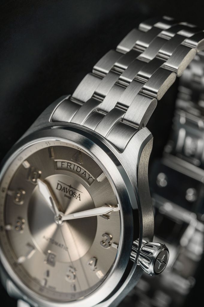 Kónická korunka je svým tvarem a vnějším rýhováním navržena tak, aby ji bylo možné snadno ovládat i rukama v rukavicích. Zadní strana pouzdra, která se jednotlivě čtyřikrát šroubuje a je opatřena průzorem, odhaluje švýcarský automatický kalibr DAV3023. Vrcholem je nově vyvinutý skeletonizovaný rotor DAVOSA se zobrazením loga značky a jemně zdobený Côtes de Genève.