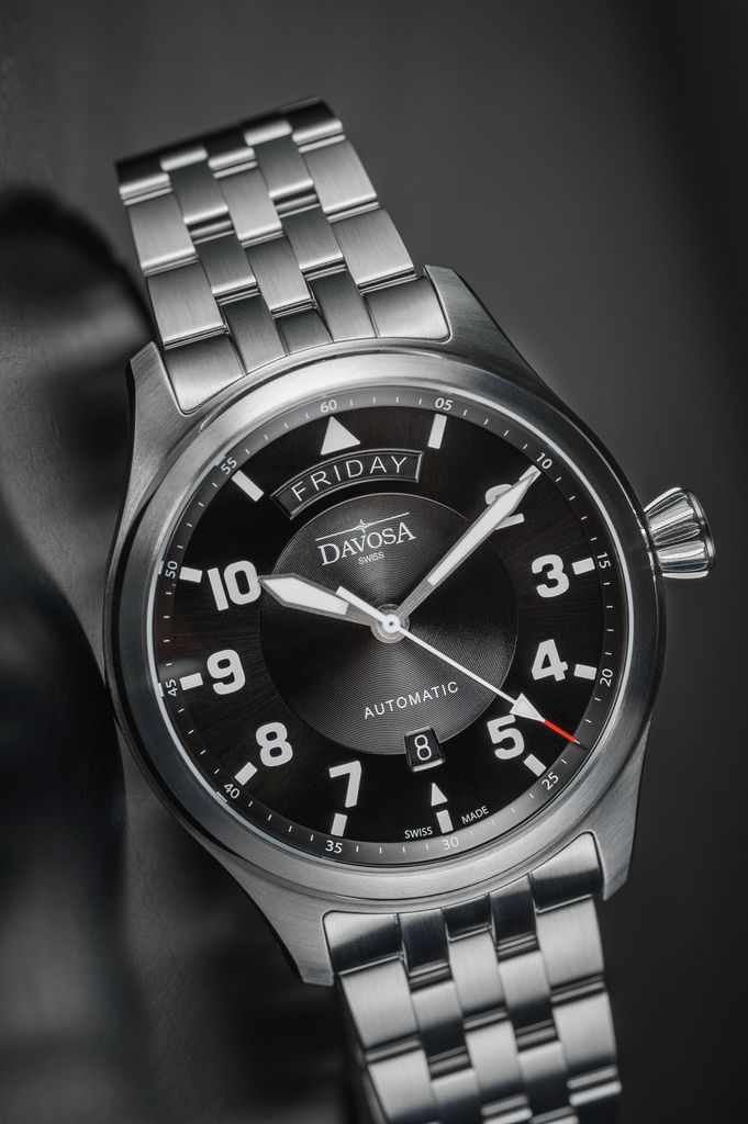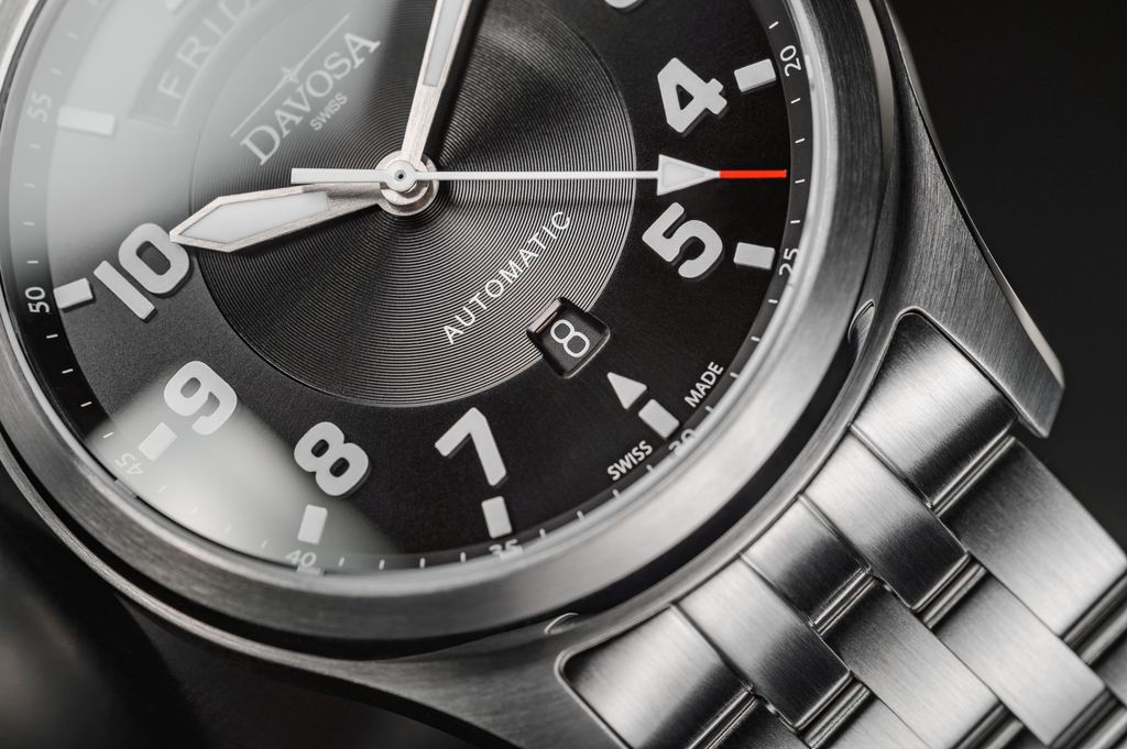 Kónická korunka je svým tvarem a vnějším rýhováním navržena tak, aby ji bylo možné snadno ovládat i rukama v rukavicích. Zadní strana pouzdra, která se jednotlivě čtyřikrát šroubuje a je opatřena průzorem, odhaluje švýcarský automatický kalibr DAV3023. Vrcholem je nově vyvinutý skeletonizovaný rotor DAVOSA se zobrazením loga značky a jemně zdobený Côtes de Genève.