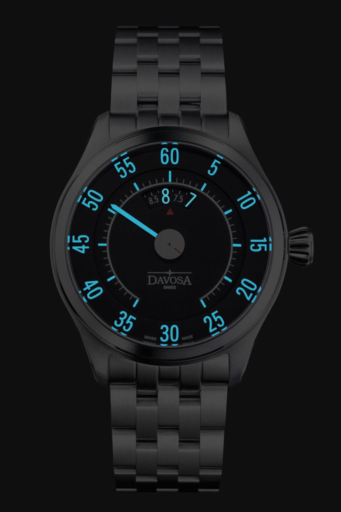 Hodinky o průměru 44 mm se strojkem DAV 3023 (vycházejícím ze strojku ETA 2834) mají v první úrovni hodinovou ručku nahrazenou rotujícím diskem, který zobrazuje hodinu v okénku pod pozicí 12 pomocí elegantní červené šipky. V druhé úrovni je minutová ručka zobrazující minuty na dvou kruhových indexech - menší kruh zobrazuje minuty, druhý zobrazuje čas po pěti minutách. Ve třetí úrovni je vteřinovka na rotujícím stříbrném disku zobrazena červenou čárkou. Hodinky mají SuperLuminovu BGW09, která zvýrazňuje ukazatele času za tmy.