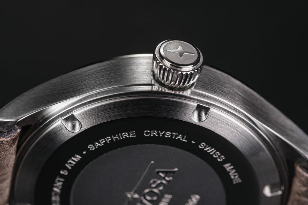 Sportovní, mladistvé, nápadné - s precizním designem ciferníku, barevnými akcenty v oranžové a červené barvě a řemínkem z nejjemnější italské vintage kůže působí hodinky Axis Automatic na zápěstí výrazným dojmem. Váha hodinek je 116 gramů
